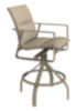 Contemporary adjustable swivel arm bar stool with cushion, multiple colors.